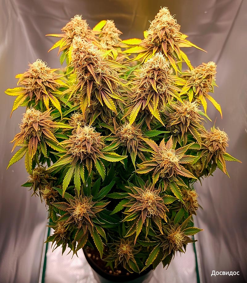 Dos-Vi-Dos Auto – автоцветущая Индика с классической генетикой и ТГК до 25%. Полностью созревает за 7–8 недель, даёт 500–700 г/м² в индоре, имеет сладкий, пряный и землистый аромат. Эффект сочетает лёгкий high с глубоким стоуном – идеален для вечернего расслабления и снятия стресса.