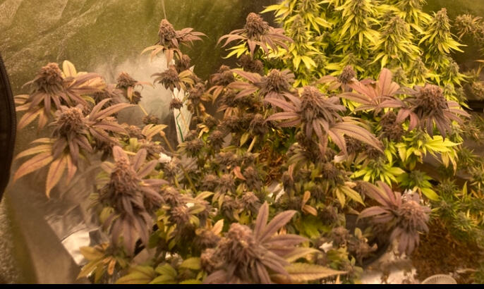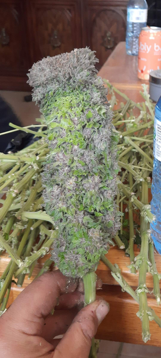 Было 3 растения, но только одно оказалась ну прям самым фиолетовым. Хотя все получились отличными. Растихи пребывали на вегетации всего 4 недели, так что во время следующего грова подержу на веге подольше, недель до 8, чтоб кусты больше массы нарастили. Шишки получаются очень плотными, толстыми и липкими. Вообще гров простой и забавный, кусты этой генетики очень послушные и предсказуемые, но в плане эффекта шишки способны на многое, так что скучно не будет.