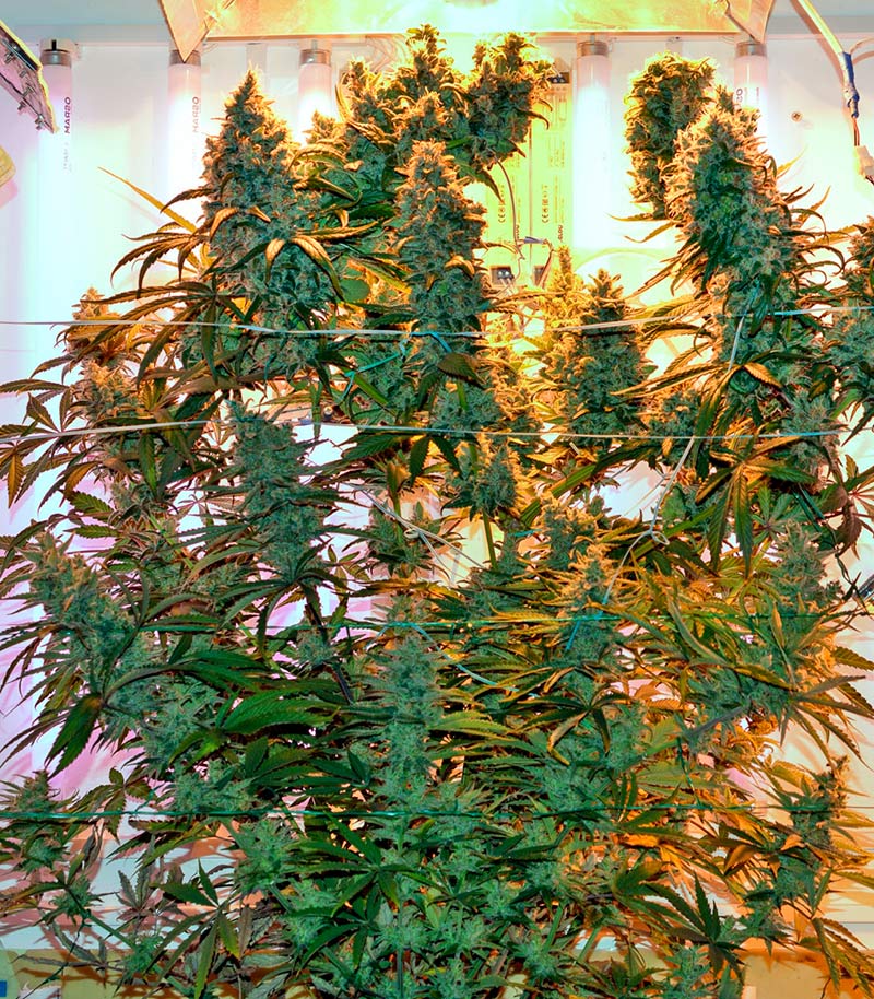 Кусты развиваются умеренно: в индоре их высота обычно колеблется в пределах 100–120 см, а некоторые экземпляры вытягиваются до 145 см. Растения сильно ветвятся и лучше всего показывают себя при выращивании в гидропонике, где могут дать до 400 г/м² при оптимальных условиях. В аутдоре, особенно в тёплом и сухом климате, потенциал ещё выше – до 800–1000 г с куста, при этом сорт демонстрирует отличную устойчивость к плесени и болезням, несмотря на довольно капризный сативный характер.