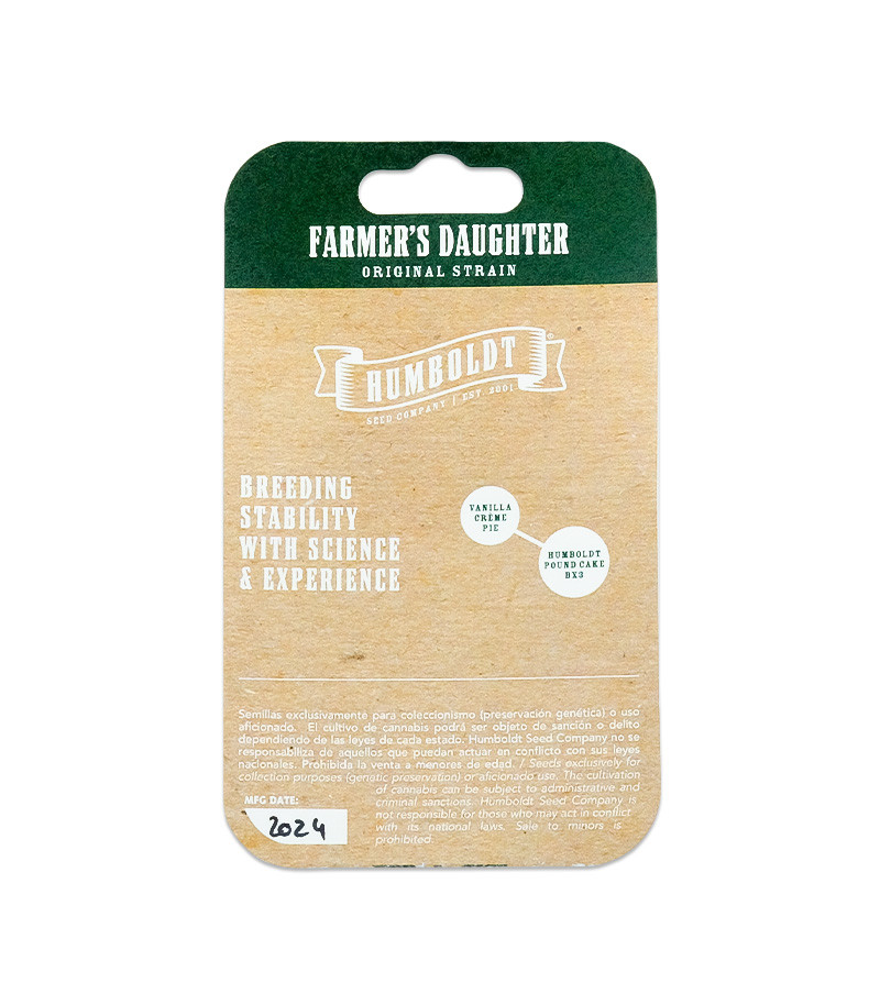 Феминизированный сорт каннабиса Farmer's Daughter для компании Humboldt Seed Company является чем-то большим, чем просто очередной горячей новинкой. Созданием этого растения селекционеры хотели отдать дань уважения семейному фермерству, а также своим дочерям. В округе Humboldt каннабис неразрывно связан с семьей, наследием и традициями.