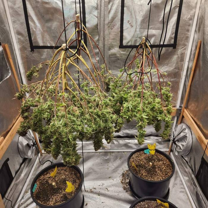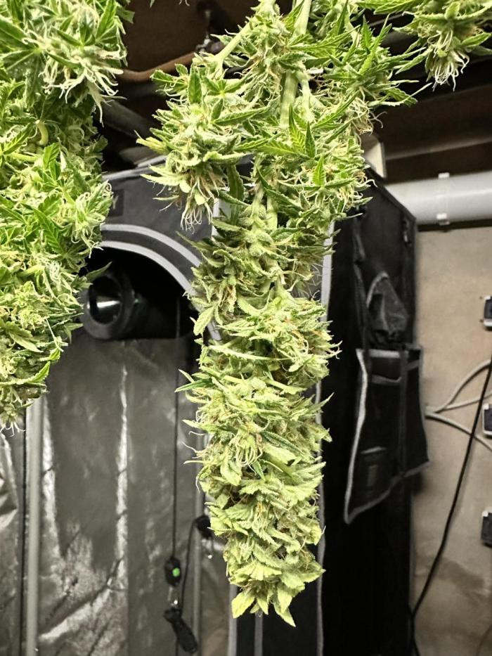 Лучшая генетика среди всех сортов. Это растение не только превзошло два других по росту, но и по количеству трихом и смолы. Его немного подсушили 8 дней, чтобы суметь хоть как-то оценить качество дыма с потрясающим ароматом и вкусом. Но теперь не могу дождаться полной пролечки, потому что пока что шишки пролечились всего неделю, но они уже настоящий огонь.