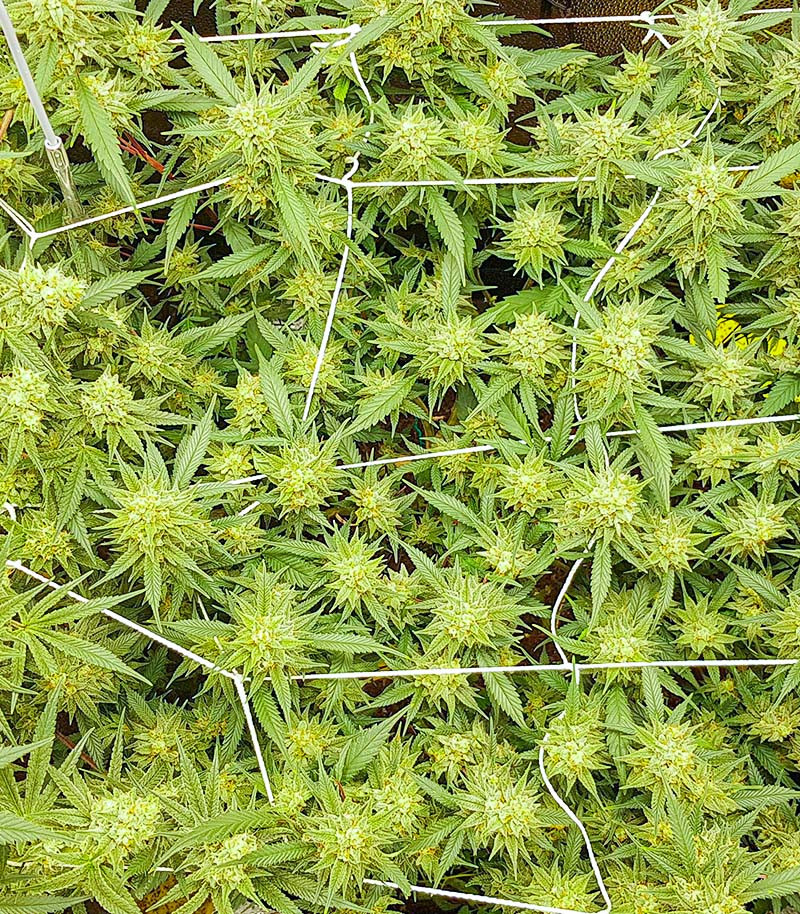 Высота растений при выращивании в помещении составляет 80-110 сантиметров, что не создаст проблем с нехваткой пространства в гроубоксе. Собирать урожай можно будет уже через рекордные 45-55 дней с момента появления первых предцветов. Один квадратный метр гроубокса порадует коноплевода 500-550 граммами сочных соцветий с обилием смолы и мощным эйфорическим воздействием.