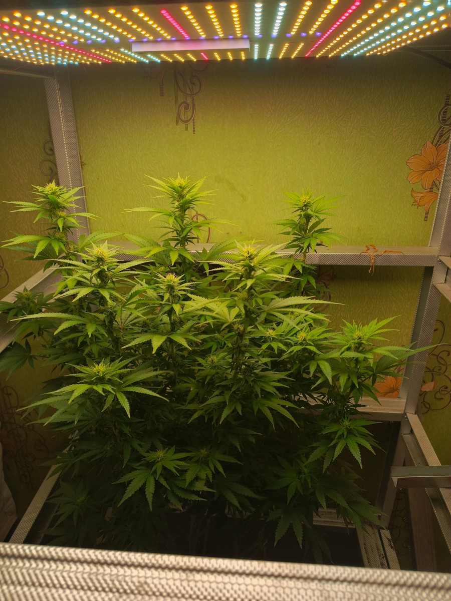 Очень разрастается, что на фото листьев в два раза больше срезал уже и бошек почти половина отрезал, и это все в 7 литровом горшке на кокосе