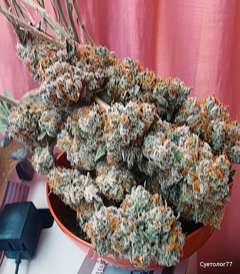Достоинств у этого сорта внушительное количество скажу только самые основные это его рост количество шишок сног шибательный Стоун на пару часов минимум с тем учетом если шишки дали дозреть и пролечили а не зелёную сдолбили 🤣 через микроволновку! Ну и конечно же его не прихотливость с ним можно делать всё это угодно он достойно выдержит любые условия кривые руки или не знанку новичка !