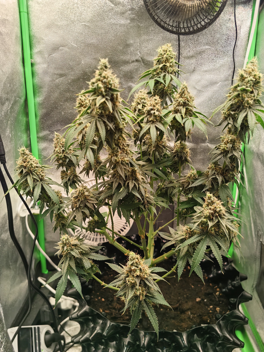 По общим впечатлениям сорт очень крутой и размах ТГК у него очень хороший!! Спасибо Семенычу!! Выросла 51см в высоту, шишки липкие, сейчас в процессе сушки. Росла на линейке удобрений Biobizz под бордом 120w. Крутая бабка!!!