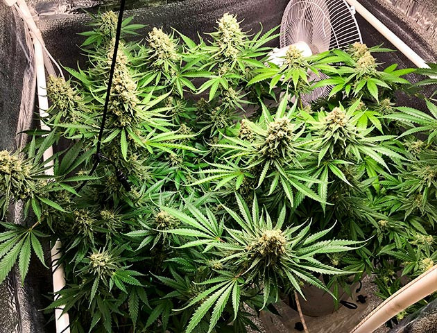 Были и топпинг, и дефолиация, и скрог, и растения прекрасно на все реагировали, развиваясь шикарно. Стойкие и крепкие, можно сказать, что проблем особо не было. Разве что только на веге пара кустиков как-то отставали, особенно один был маленьким. Однако все выровнялось и уже буквально к 6-7 неделям мой бокс с гидроустановкой на 4 посадочных места стал напоминать джунгли. Очень энергичный сорт в плане развития и отклика на все мои манипуляции, и предсказуемый, что немаловажно. Зацвел быстро, уже спустя неделю после перевода в режим 12/12.