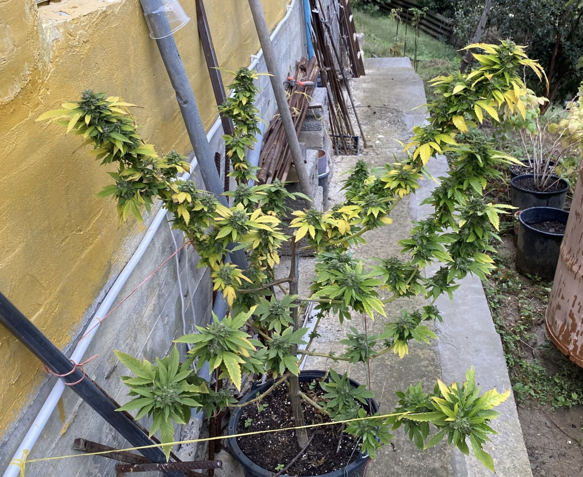 Гров-сюрприз, гров-приключение. И это мой первый гров, кстати, знакомый поделился семкой, и думала, что растить буду LSD Auto. Планировался аутдор в горшке. Семку сразу в грунт садила в маленький горшок, росток получила спустя несколько дней, и все шло неплохо. Пересадила в 20 литров, начала выносить на улицу, а потом и вовсе там оставила. Были проблемы, конечно, не без этого: насекомые, перекорм, промывки-обработки. Вроде все нормально, но вот не зацветает и все тут, 2 месяца и елка 130 см, 3 месяца и дерево 160 см… Еще и листва стала желтеть, видать тесно уже корням было, но как перевалить эту махину в другой горшок? А оказалось, что это фотик – LSD fem. И жизнь заиграла новыми красками, потому что никак я не была к такому готова.
