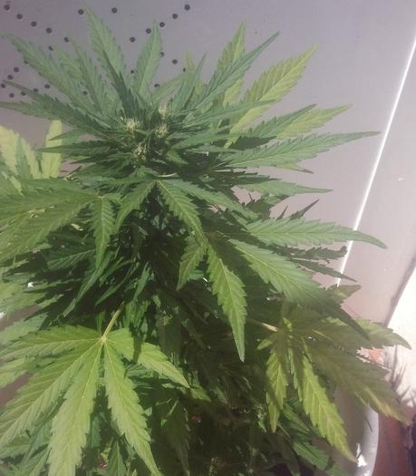 Maxi GoM – растение с активной прибавкой высоты в фазе цветения (дорастает до 50см в помещении и до 150 см на улице), быстрым периодом созревания, огромной центральной колой и развитыми боковыми ответвлениями. Соцветия накануне созревания стремительно набирают массу, поэтому ветви нужно подвязывать. Без поддержки не избежать перелома центрального соцветия. Шишки жесткие и сплошь покрыты белесым налетом смол.