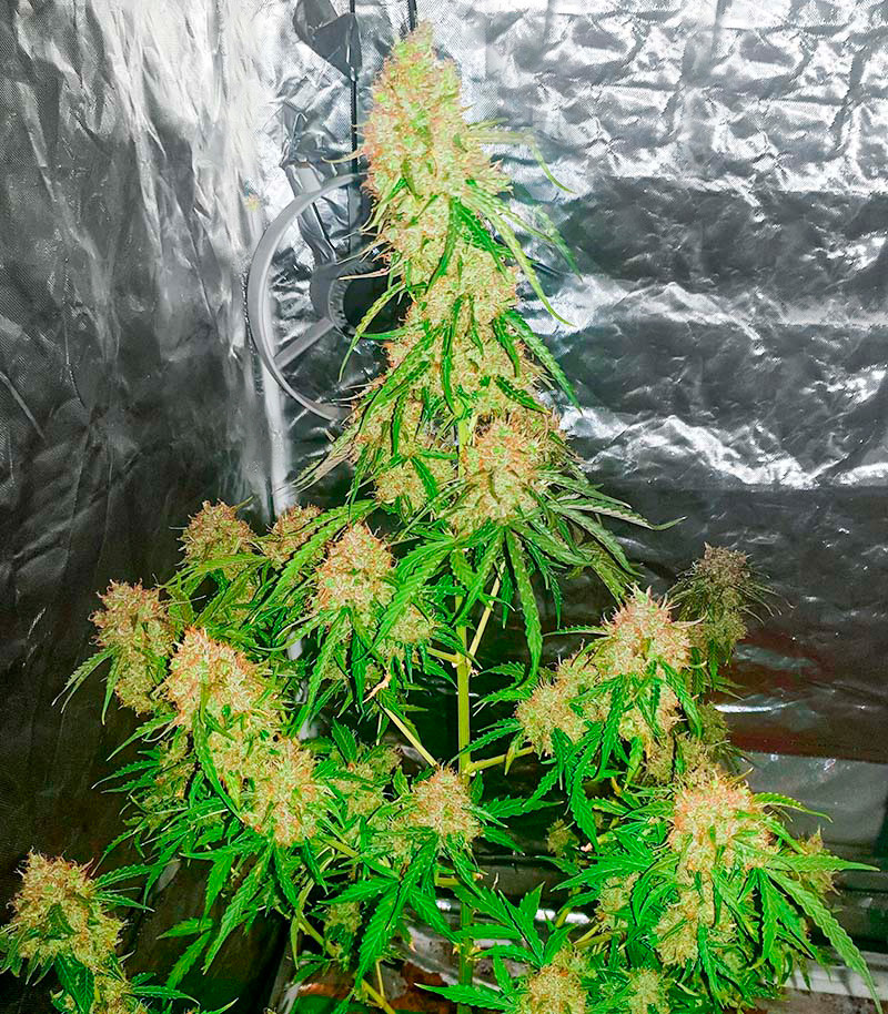 Кусты гибрида вырастают коренастыми и пышными. Внешне они напоминают новогоднюю ель. Их ветви обрастают большим количеством необычайно плотных и смолистых шишек, испускающих насыщенный аромат. Довольно часто им требуется дополнительная подпорка. К сорту можно смело применять различные техники контроля роста и повышения производительности. Они очень хорошо реагируют на ScrOG, LST-подгиб, SOG и мейн-лининг.