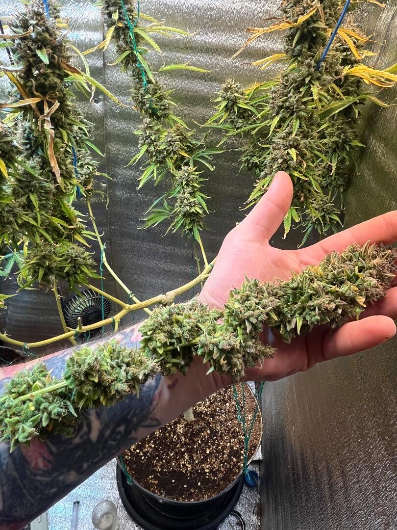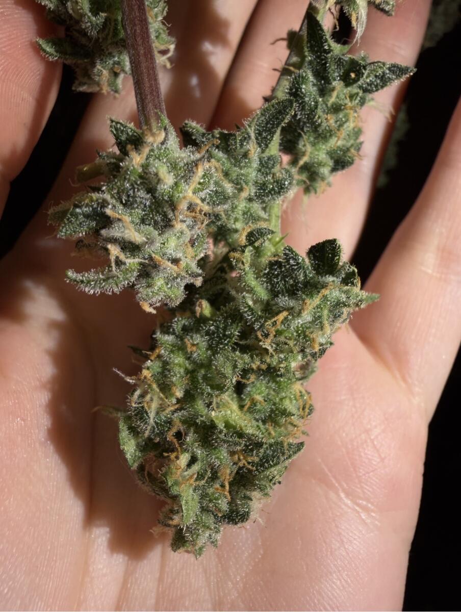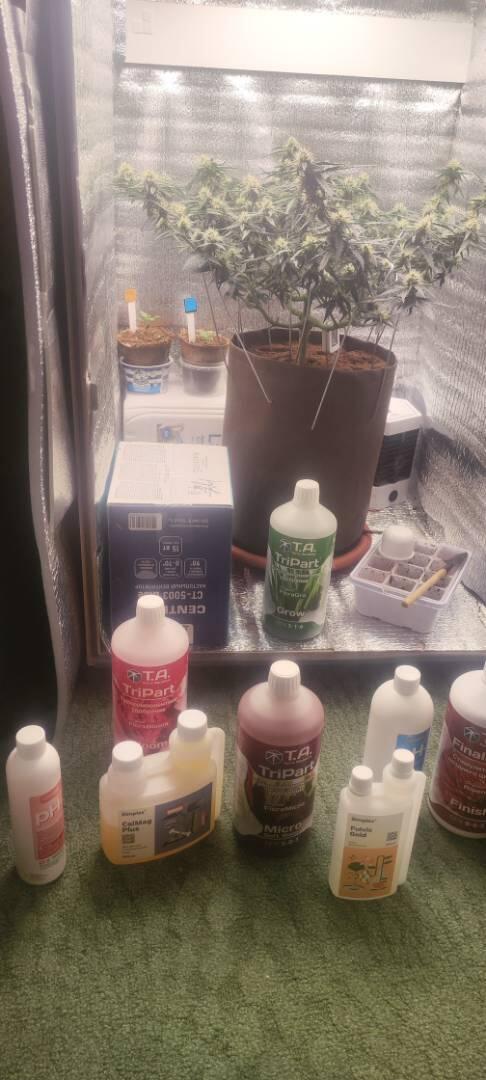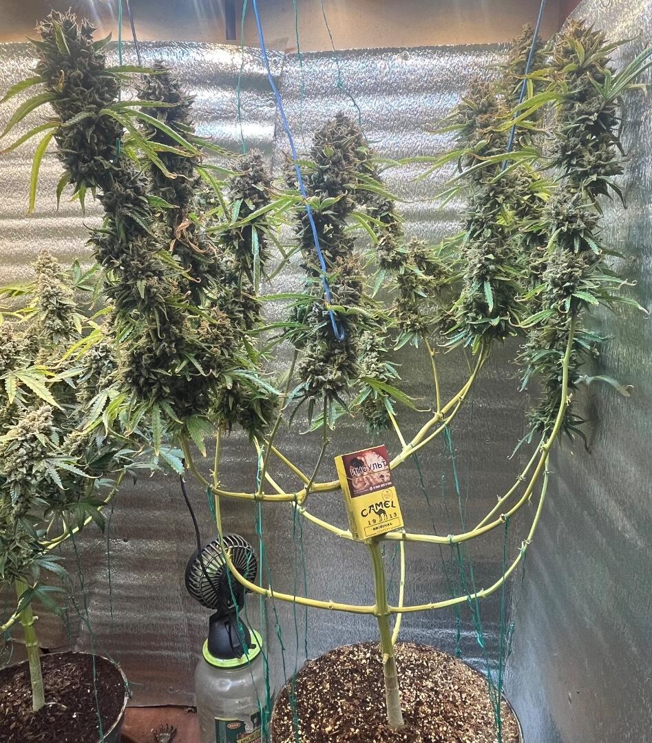 изначально я планировала пробовать куст, варварский поступок, знаю, но мне хотелось чувствовать изменения на каждом этапе, понять как должно быть в идеале, в один момент уже чувствовала себя сумасшедшим ученым😅 кустик случайно был сломан во время тренировки, резинка оторвала стебель во время растяжки, Растишка выдержала потерю, затем на этапе цвета появились желтые пятна, как оказалось нехватка фосфора из-за неисправного прибора ph, не знаю с какого этапа сломался прибор и ph был далеко ниже 5,5, собственно поэтому шишки и получились карликовыми, это лишь мои догадки...