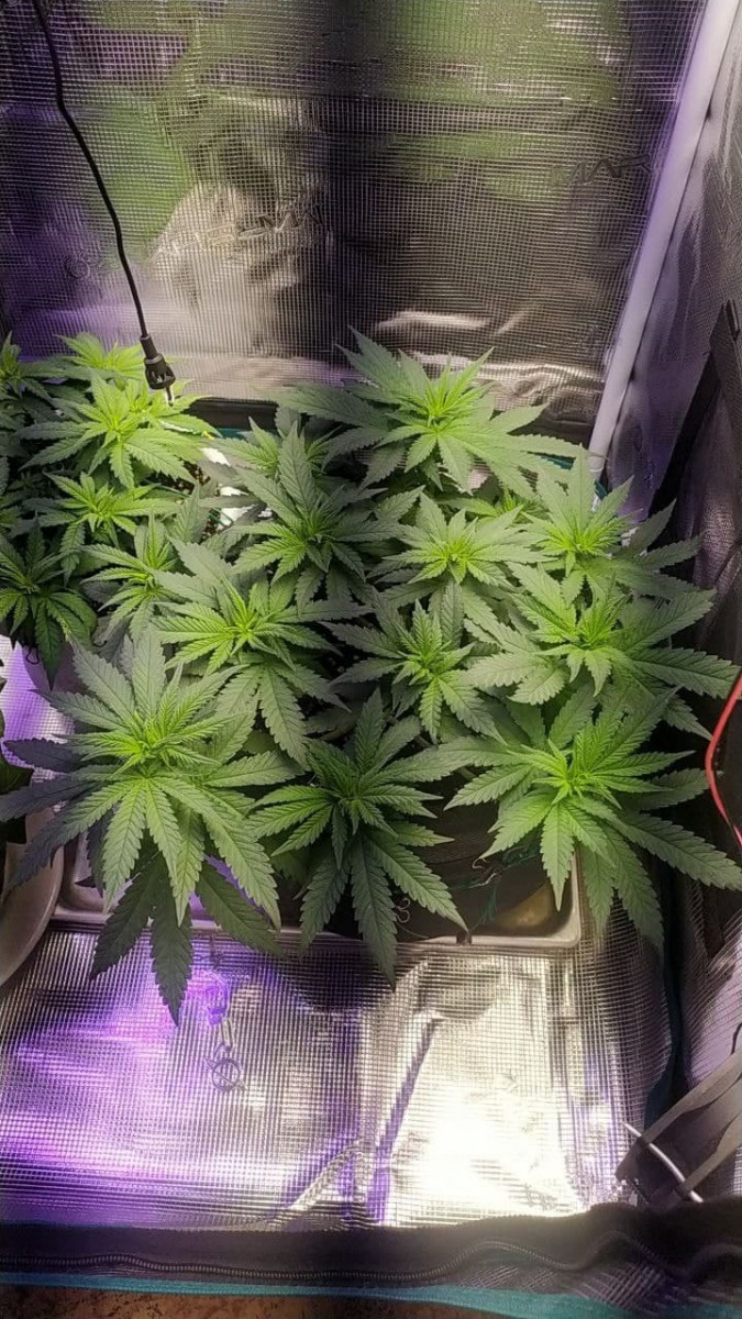 Я не опытный гровер и это мой первый опыт.Нам 37 дней, маленькому 31 день. Фото старенькое, сейчас они уже постарше одному 48 дней, другому - 42, уже приятно пахнут. Удобряю раз в 10 дней, поливаю покупной водой в которой больше всего минералов.Поливаю по мере засухи земли.Как только земля подсыхает начинаю поливать.Смотрю фотографии данного сорта,у всех разные фотографии,как будто бы сорта другие.Или может они у всех по разному растут.Мой вытянулся листья начинают расти вширь. Боюсь, что моего самодельного гроубокса им не хватит.