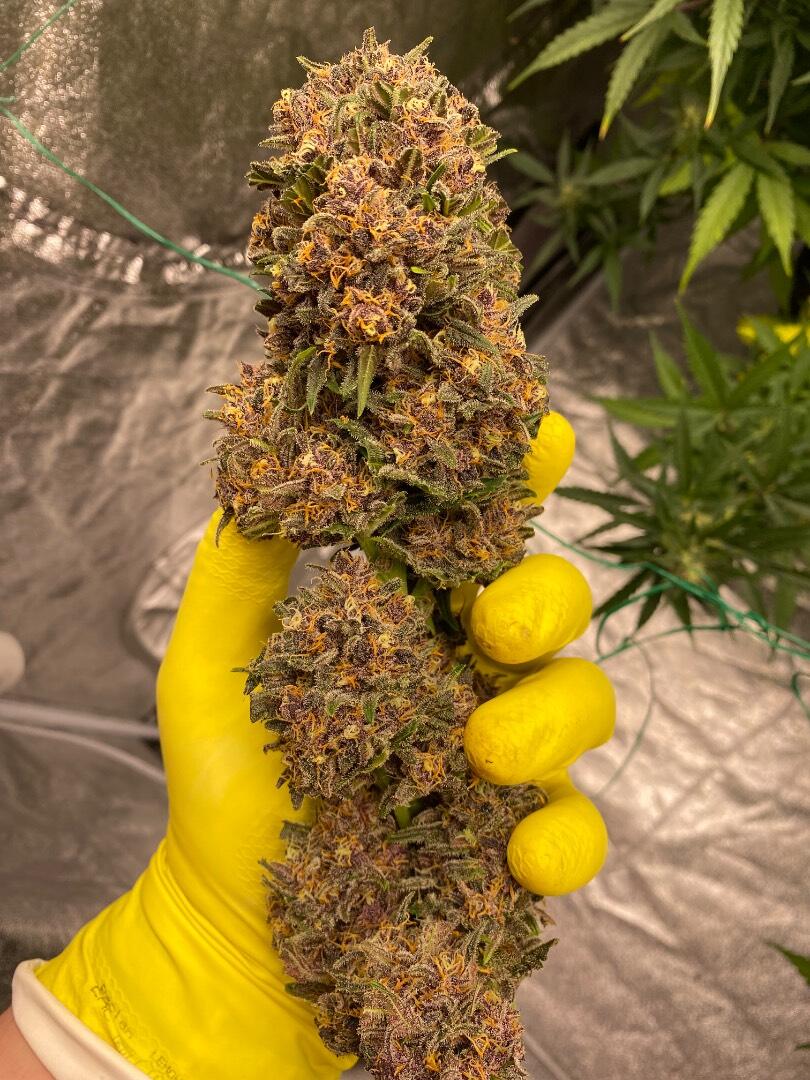 Много шишек, при чем они так выглядят как артишок. Очень плотные, кажется если их укусить будет прям хрустеть. Эффект классный. Хотя начитался тут, что эффект слабый, не очень, да и автики слабее вообще. Я не опытный уже накрутил, что зря такие купил. Прошло 63 дня( не доводил до конца, дела) Фиолетовыми они почти не стали (чуть чуть, особенно было заметно когда свежую нарезал ) . Ну и понятное дело я рано срезал, сам эффект классный и сильный!!! Не знаю кто эти отзывы оставлял, может путали, шел как -то в магазин, а он все отдаляется и отдаляется, ну я добрался