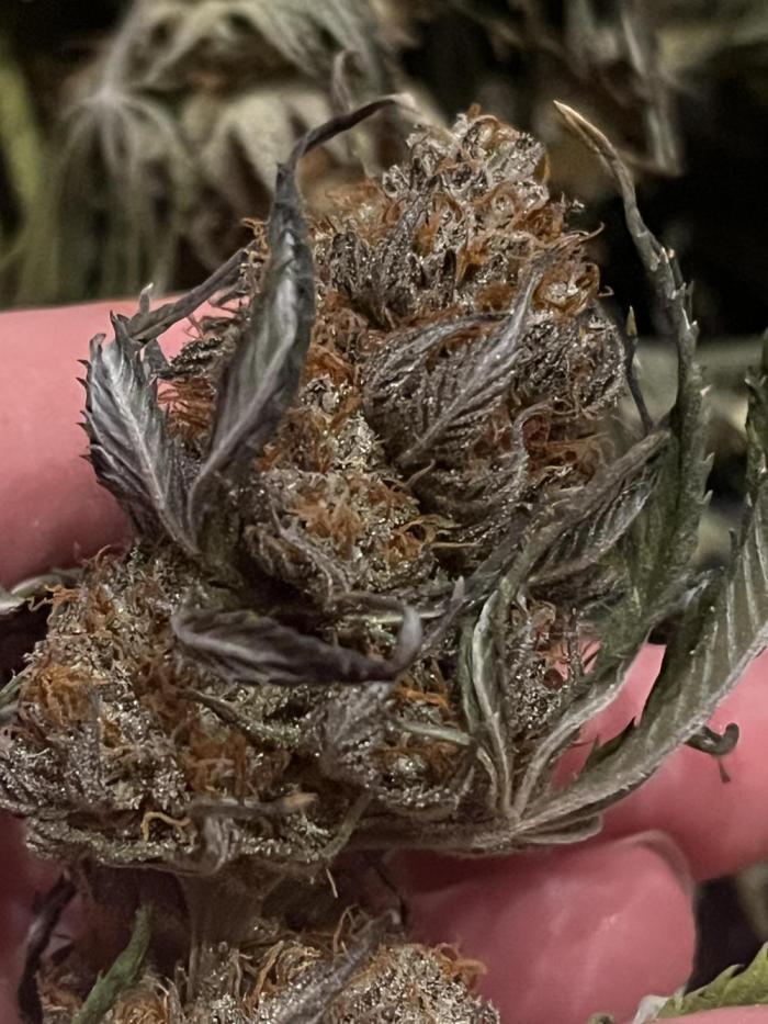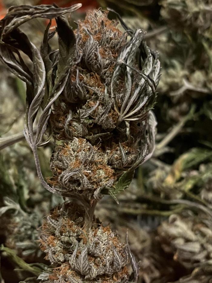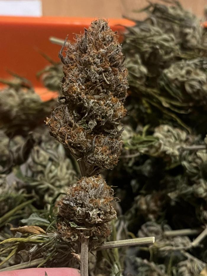 Эта красотка просто потрясающая. Терпены непревзойденные – очень насыщенный профиль, сплетение ароматов сладких конфет и топлива. На просушку ушло 2 недели, шишки мелковаты, но суперплотные и смолистые.