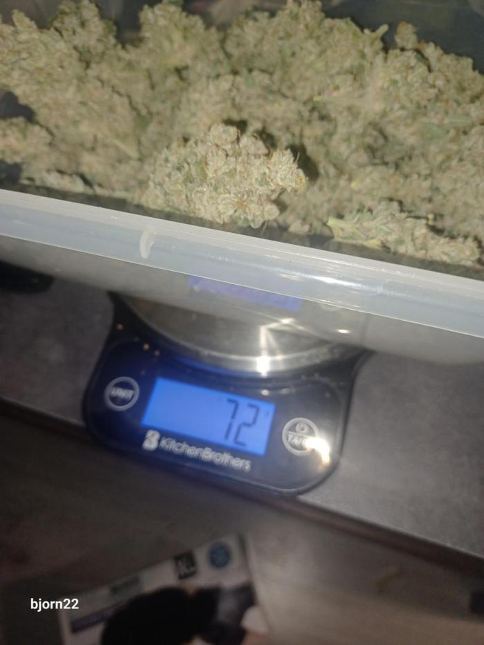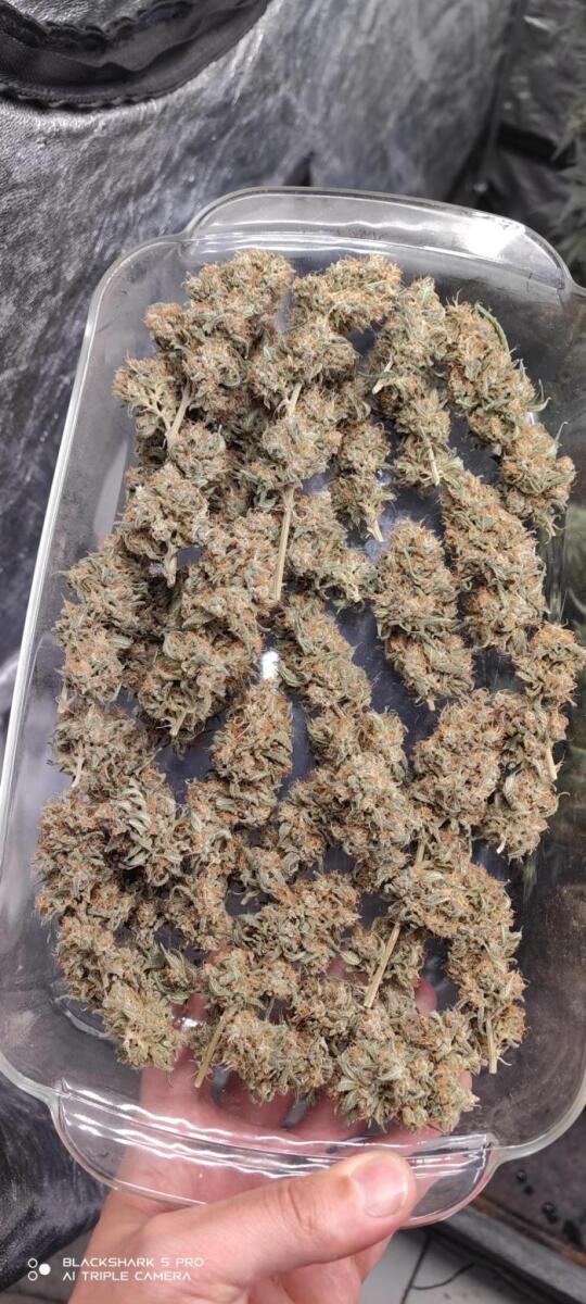 Этот сорт легко и просто вырастить, он крупный и быстрый. Поставлю этим шишкам 10 звезд, если они в процессе сушки и пролечки станут фиолетовыми. Но, в любом случае, у меня большой урожай суперпахучих и липких шишек. Все натуральное, органический аутдорный гров, только земля и вода, и растению было норм. Определенно, этот сорт стоит выращивать.