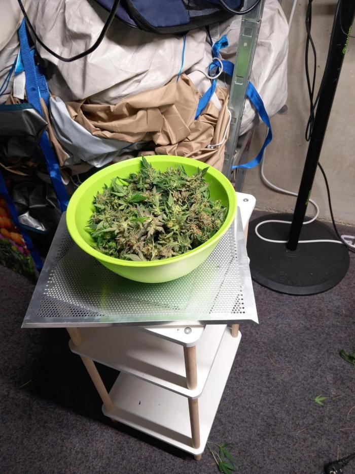 Мне пришлось собирать урожай раньше времени, потому что куст Purple Lemonade от Fast Buds оказался слишком большим и тяжелым. Он постоянно падал по несколько раз в день. К сожалению, на нем получилось лишь несколько фиолетовых шишек, все остальное зеленое. Пришлось обрезать все ветки по очереди одну за другой. Шишки весили 1273 грамма во влажном состоянии! Многие шишки очень жирные, некоторые еще не совсем созрели, но, думаю, я не разочаруюсь все равно.