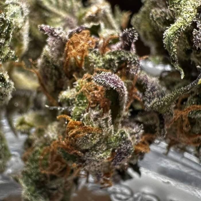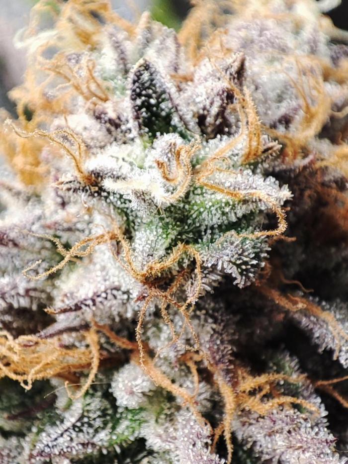 Purple Lemonade FF отращивает массивные, красочные бутоны, которые могут похвастаться целой гаммой розовато-фиолетовых оттенков с темно-оранжевыми пестиками, растущими во всех направлениях. Под микроскопом приятно смотреть на их сиреневые трихомы. Бутоны источают восхитительный цитрусовый аромат торта и более сладкий, фруктовый аромат.