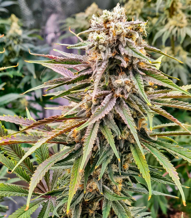 «Партизаны» высоко оценили «вшитый» режим маскировки сорта. Кусты от природы плотно сложенные и невысокие (рост до 100 см). Они не выбиваются из летнего пейзажа где-то на лесной опушке или в домашнем саду, а с приходом цветения начинается настоящее шоу. Пурпурные акценты на листьях и толстый искристый слой смолы делают посадку больше похожей на какое-то инопланетное чудо, чем на конопляную плантацию. Причем для полного созревания урожая нужно всего 8-9 недель, а сами бутоны благоухают не менее аппетитно, чем десерт в какой-то крафтовой кондитерской.