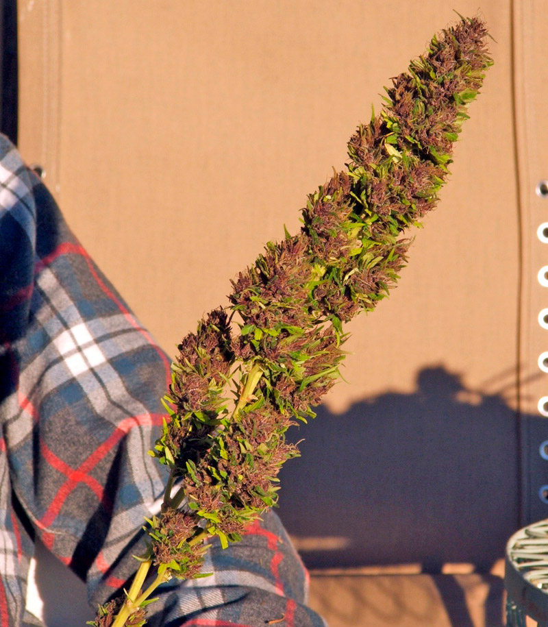 Поздняя высадка и топпинг актуальны для обоих вариантов растения. Даже сравнительно невысокий зеленый фенотип может вытянуться на 1,5-2,0 м, если не провести обрезку. Тем, кто не заинтересован в шишках, которые будут раскачиваться над головой, следует удалить макушку после формирования 3-4 узлов и перевести растение на цвет спустя месяц вегетационного роста.