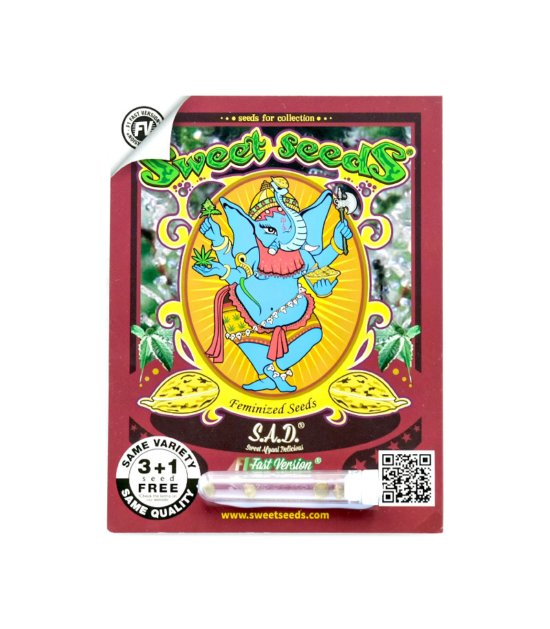 S.A.D. Sweet Afgani Delicious F1 Fast Version – это ускоренная версия известного титулованного сорта S.A.D. Sweet Afgani Delicious. Гибрид был получен путем скрещивания SAD Auto и элитного клона Black Domina. В результате селекционеры испанского сид-банка смогли получить сорт с ускоренным периодом цветения, сохранив при этом урожайность и качество оригинала.