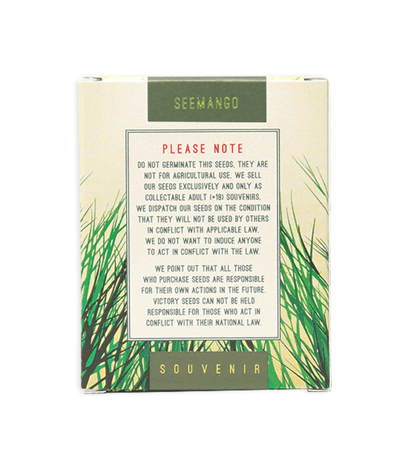 Семена конопли Seemango от Victory Seeds превращаются в ветвистые растения небольшого роста, отличительной особенностью которых является насыщенный аромат манго. Они отцветают за 8-9 недель, принося от 550 до 600 г готового продукта с одного куста. Шишки приносят яркий воодушевляющий high-эффект.