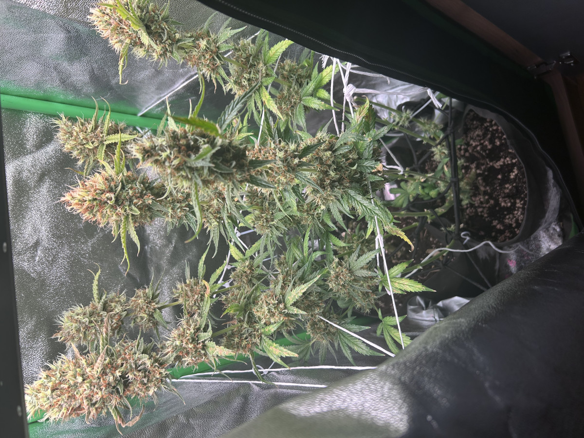 52 день цветения, хорошо развиваются сами цветы . листья расти перестали или очень медленно даже не замечаю но сами шишки уже очень широкие сами по себе и плотные! подержу их ещё максимум дней 10 и на промывку. результатом доволен полностью)