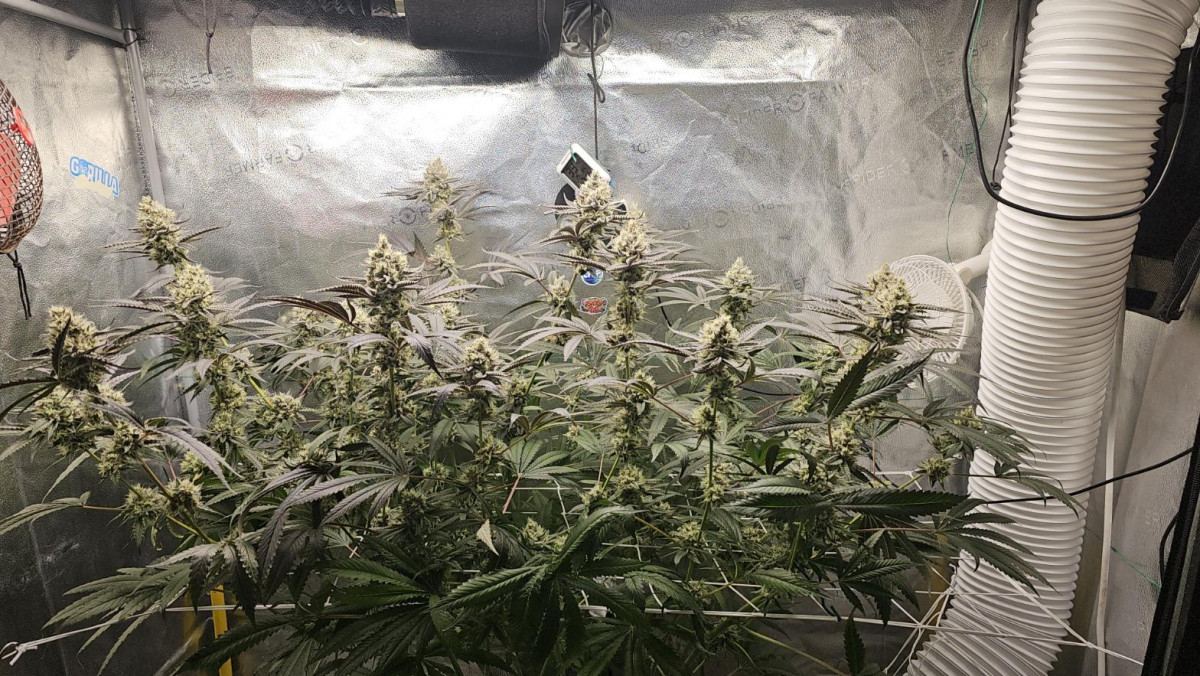 На фишине практически, 7 неделя цветения. Аромат насыщенный. На колах сформировались большие тяжелые шишки. Думал, трихом будет больше к настоящему моменту, но и что есть, то уже неплохо.