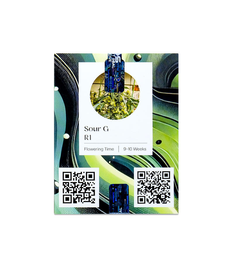 Sour G R1 – это жизнерадостный сорт с быстрыми темпами роста. Развивается растение как типичный гибрид: достигает средней высоты, хорошо ветвится и формирует многочисленные однородные соцветия по всей верхушке куста. Шишки удлиненные, с губчатой структурой, но плотные на ощупь. В процессе цветения, которое длится 9 - 10 недель, Sour G R1 окружает себя невидимой дымкой с кисло-сладким ароматом цветов, фруктов и дизеля.