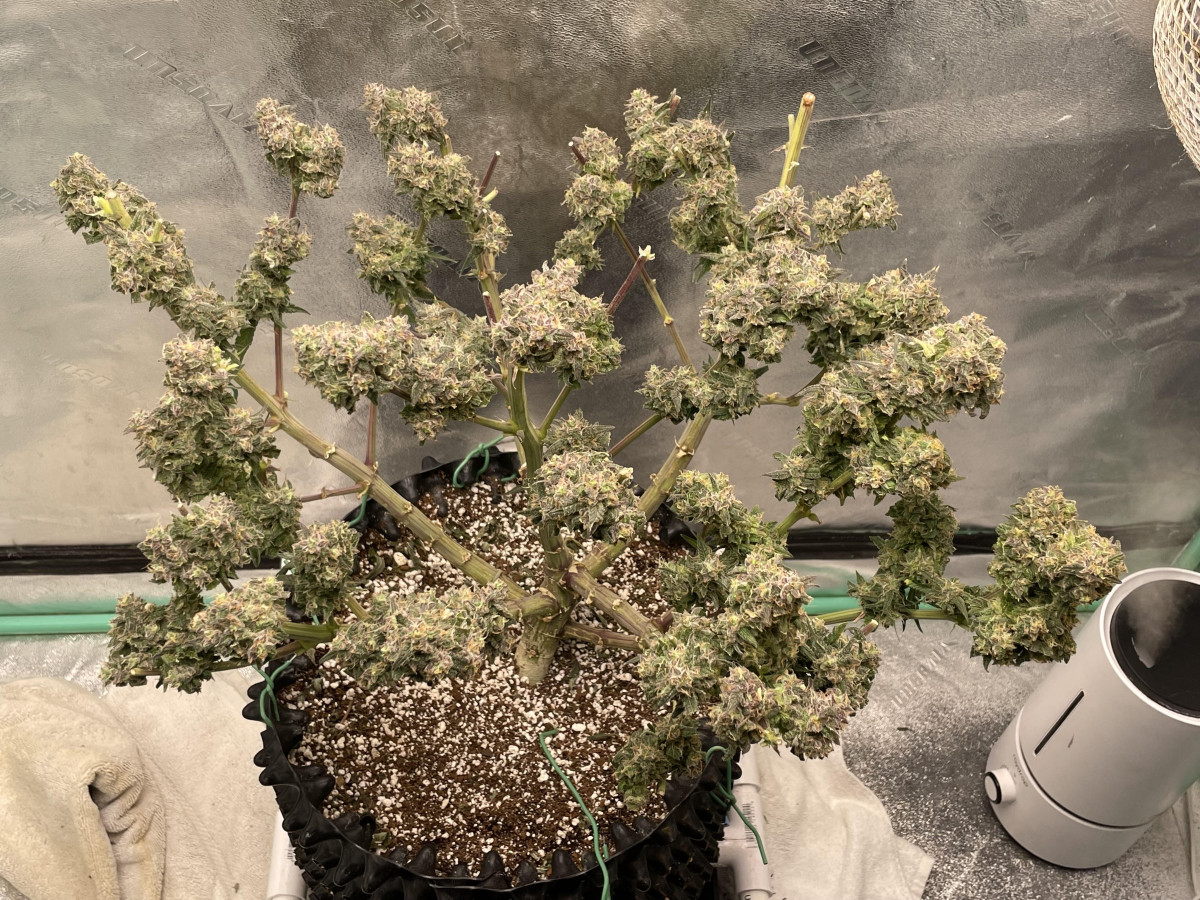 Это растение выросло именно так, как я ожидал от контейнера емкостью 1 галлон. Она предоставила 18 унций влажного веса. В результате получится примерно 2,73 унции сухого обрезанного бутона. Я сделал фильм об этом растении и единственное, о чем сожалею, это то, что не дождался ее тренировок. Я также почти уверен, что мой метод крепления не то, что нужно этому растению. Она оставалась невысокой с идеально ровным куполом. Она набирала воду как чемпион. Примерно полгаллона в день с использованием только фитильной системы резервуара. Не могу дождаться, когда снова смогу вырастить этот сорт.