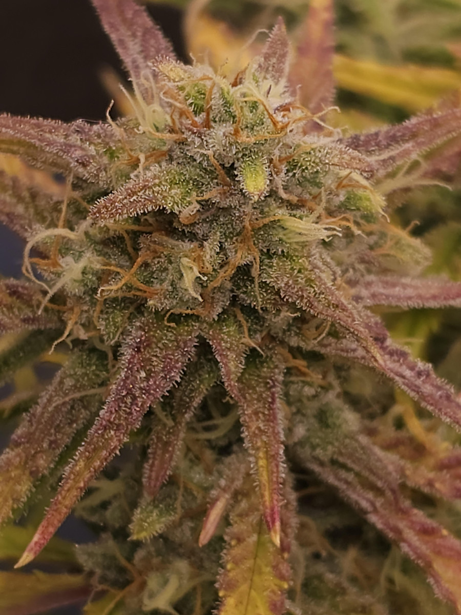 У меня была возможность попробовать это снова после хорошей недели или около того пролечки. Мне это нравится теперь больше. Не такой воодушевляющий, как другой, Banana Purple Punch, «насколько я могу судить», но я сообщу, если что-то изменится. Запах бутонов в банке действительно сырой? Не знаю, что это такое, но это совсем не фруктово. Очень кислый, топливный, почти как порча, но не совсем...? Влажность очень близка к 62%. Вкус при курении кажется приятным и гладким. Может быть, немного болтливости. Хоть и не особо заметно. Испарил его на паяльнике/банке своими руками...
