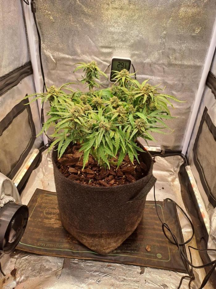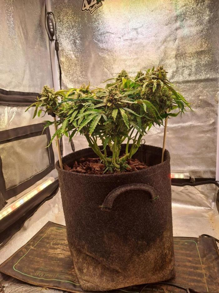 Замечательно вырос. Мне понравилось наблюдать за ним. Куст напоминал рождественскую елку – высокую (порядка 120 см) и сверкающую. Я просто дал ей вытянуться, и она выпустила множество бутонов по всем ветвям. Пахнет очень приятно с ноткой ягод. Ближе к концу цветения появилось огромное количество трихом.