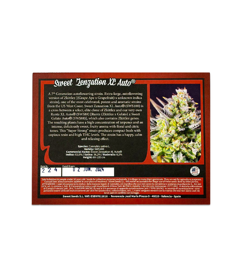 Перед вами представитель элитного класса семян каннабиса – сорт Sweet Zenzation XL Auto. Это утонченное произведение конопляного искусства было создано мастерами Sweet Seeds на основе классической американской генетики. В его основу лег один из самых востребованных, мощных и ароматных сортов Западного побережья США – Zkittlez (Grape Ape x Grapefruit). К поиску партнера для такой легенды селекционеры подошли со всей ответственностью и после долгих месяцев остановили свой выбор на не менее пахучем и смолистом Runtz XL Auto из собственной коллекции. В его жилах тоже текла благородная кровь Zkittlez, что позволило зафиксировать самые желанные характеристики, но в то же время придать растениям автоцветущих качеств для быстрого и результативного цикла.