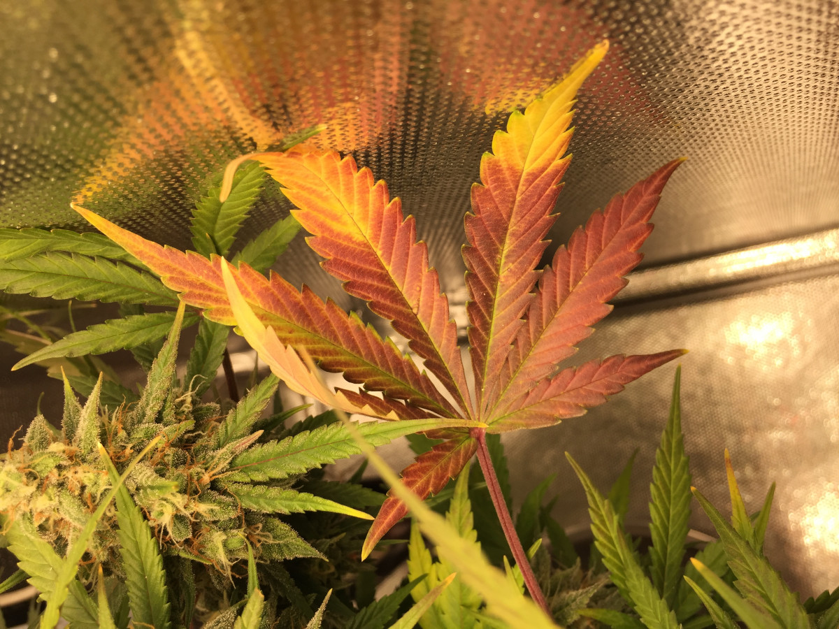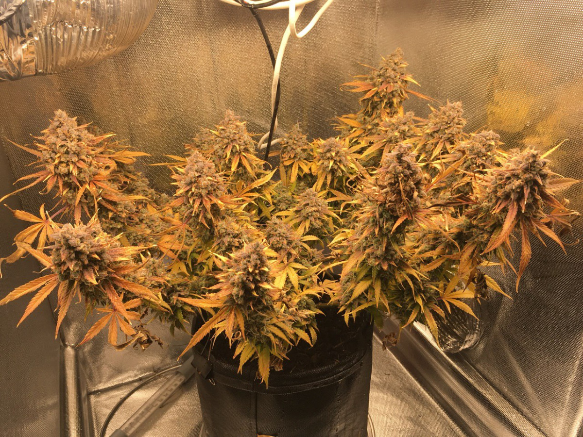 Ультра зацвела ровно через месяц от каски. Дальше все как по маслу. Под конец цикла началась магия. Листья окрасились в оранжево-красно-фиолетовый, а после добавления льда в горшок, шишки подкрасились в фиолетовый. Это даже красивее, чем я мог себе представить. Кайф!