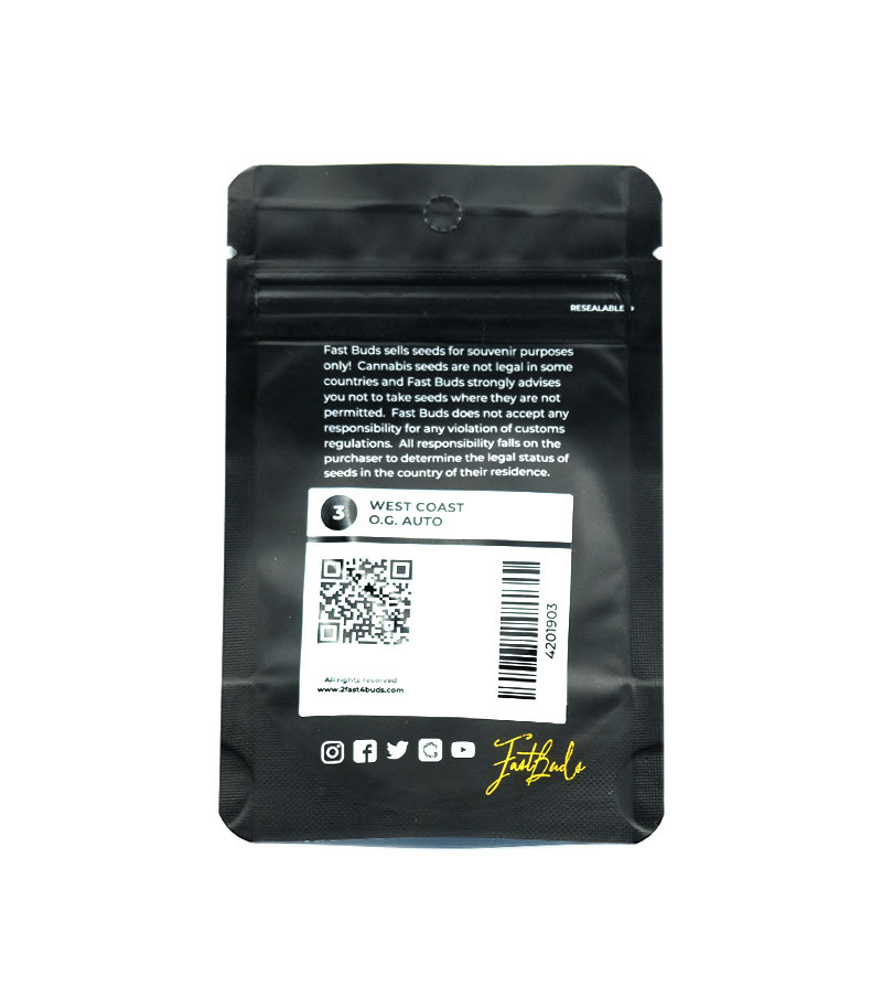 Семена сорта West Coast O.G. Auto fem (FastBuds) США, Феминизированные, Автоцветущие, ТГК-21