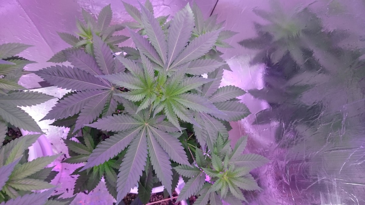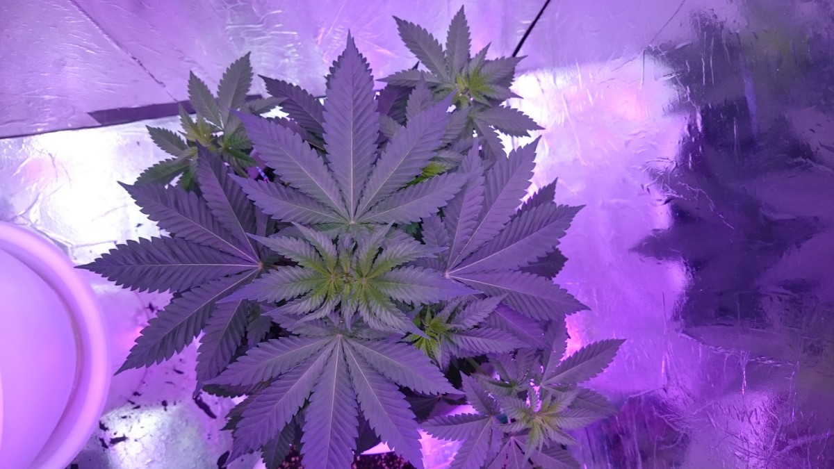 Ростишки 33 дня от каски , а она всего 20 см, карлик какойто. ягнул макушку боковые вылезли по 8 веточек. В ровень с оснавной макушкой, Что это х,з. 15 литров земли, лед 200 ват. все условия супер, что за х...я не знаю. все два куста , Один в один.. Позже отпишу,,,как дальше... фото потом