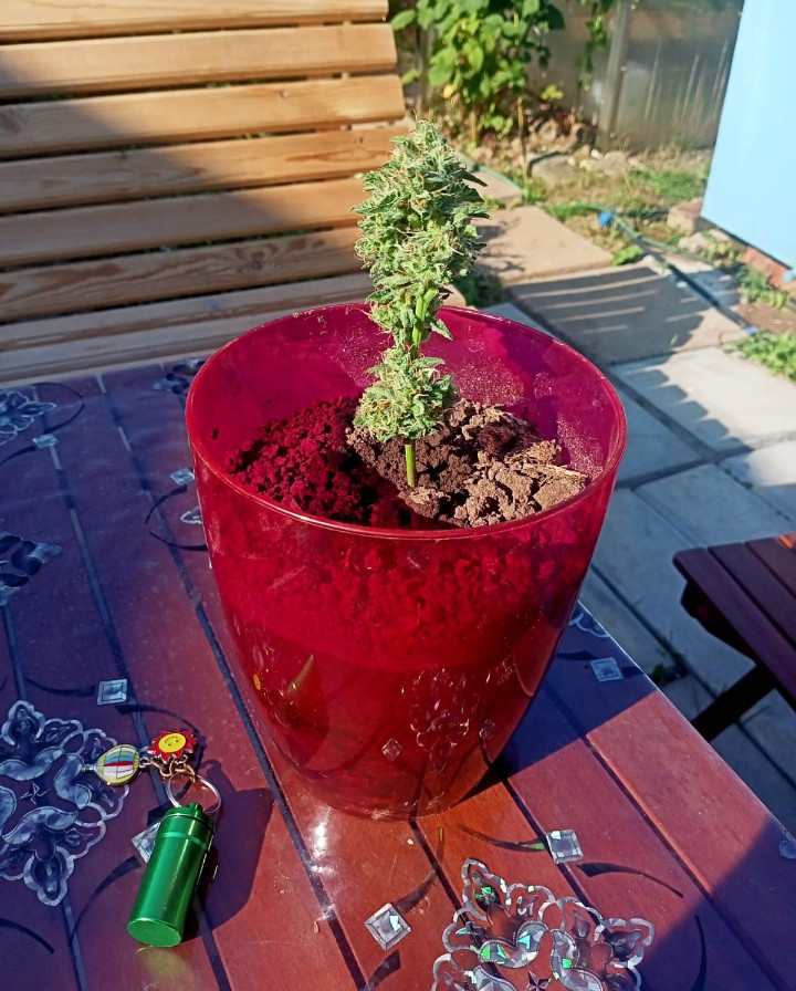 Это какой-то монстр роста. Сетка scroga его может и немного огорчит. Но не остановит. Верхушки в итоге над сеткой торчали на 30 см. сложно представить. Каким бы вырос без ограничения вертикального развития. И горшок не сказать, что большой, всего-то 18 литров. Это не самый большой из того, что использую иногда. Но и с куста 90 грамм получилось. Как бы не шибко урожайно для таких габаритов, но и цикл только 10 недель. так что простительно. Тем более еще компенсируется качеством, очень пручие шишки. Сразу такой прилив эйфории, что вообще забываешь, как звать и за что хвататься. Хочется за все и сразу, но концентрации ноль. А затем проваливаешься в какой-то портал полного расслабления и полетов. В общем, психоделическая штука. для опытных ценителей.