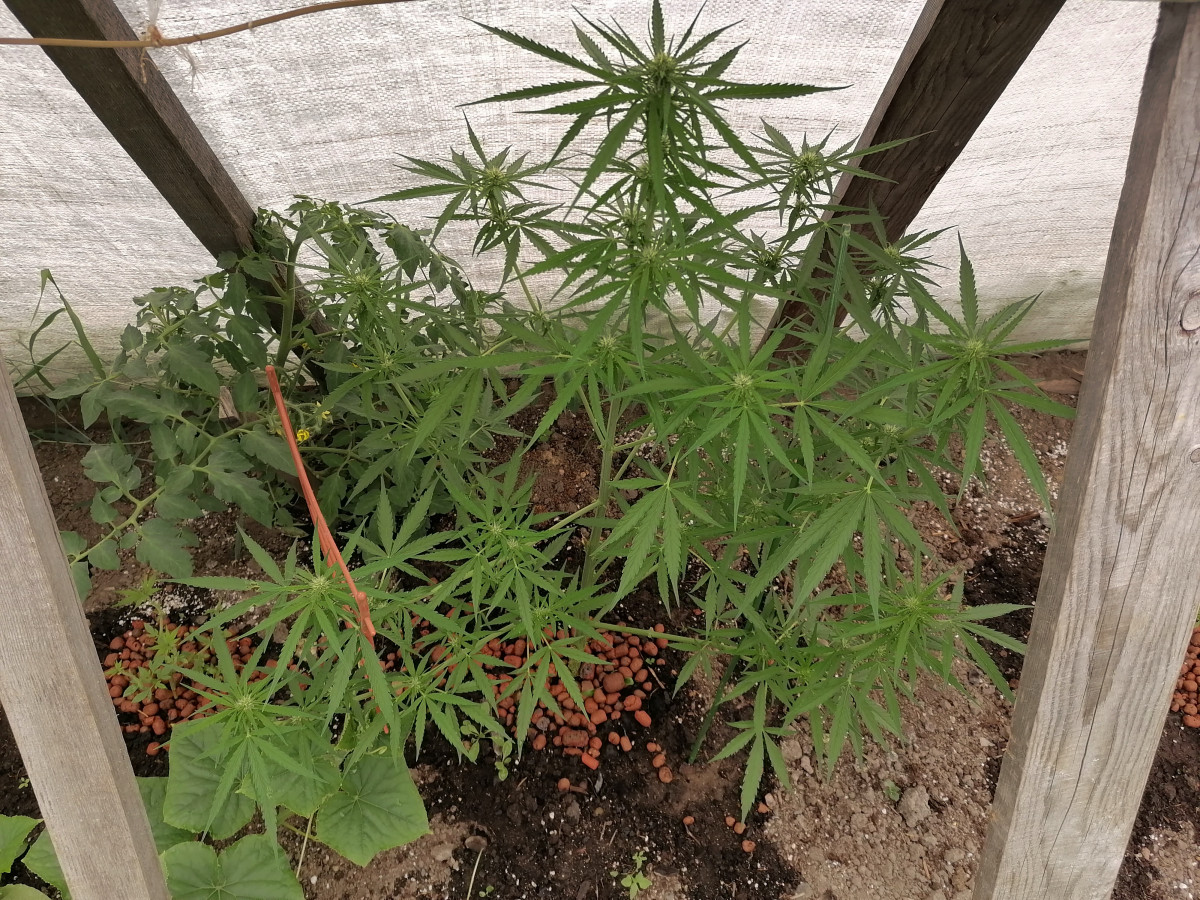 - Общие впечатленияРастиха выжила при 2-х недельном отсутствии солнца, холоде (+7°С), и вот наконец зацвела, на фото 56 дней (неделя цвета), рост 60 см. Впереди ещё 40-50 дней цвета, надеюсь вымахает ещё) Пожелайте удачи, братья раста и гроверы)