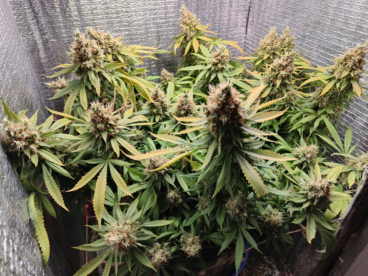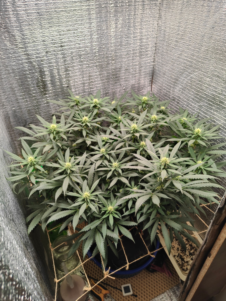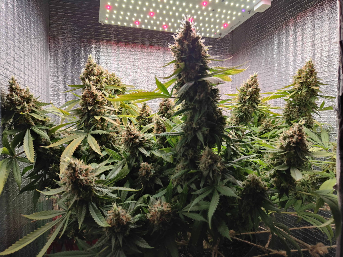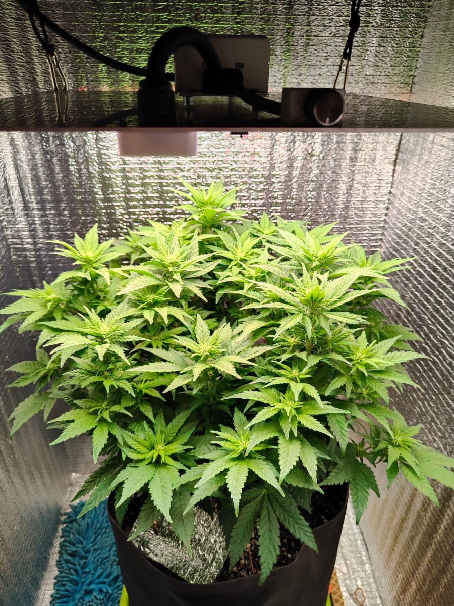 Сильный сорт, мой первый куст, думал что девочка будет повыше, но к недостаткам отнести не могу. Очень плотный куст, листвы очень много, расстояние между узлами маленькое, срезал очень много листвы чтобы воздух проходил. На фото менее двух недель как перевел в цветение, после сбора урожая напишу еще отзыв.