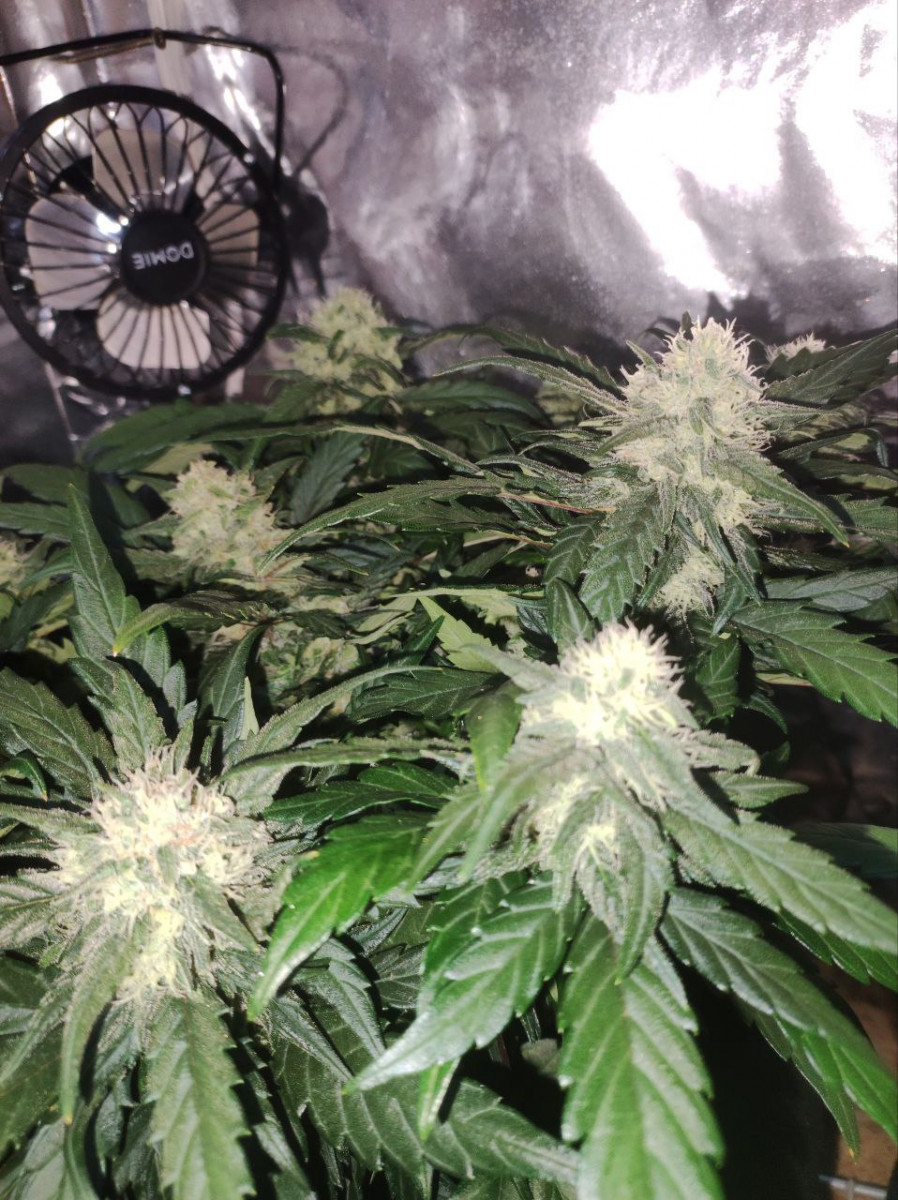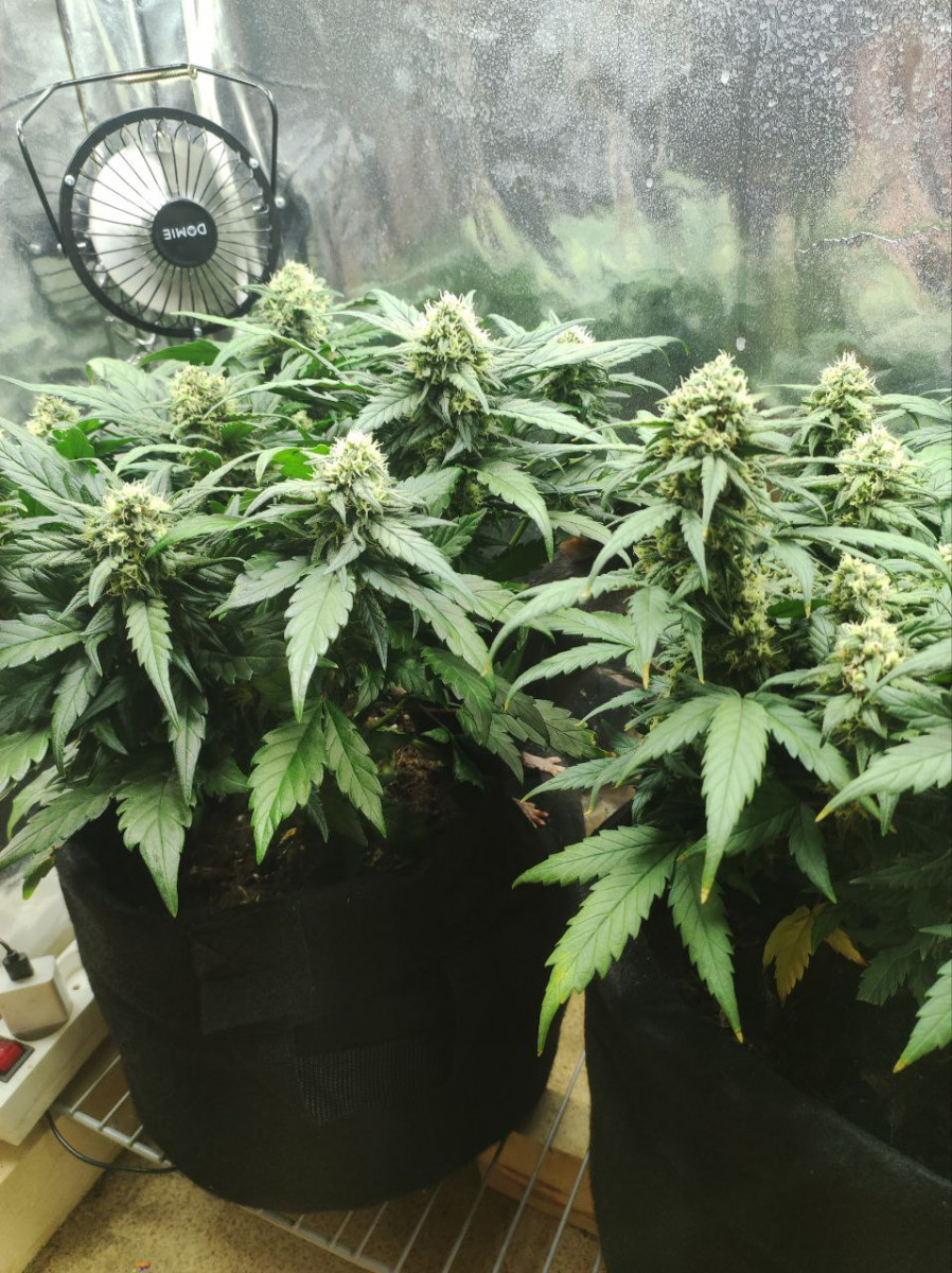 По грову - 4 из 4 проросли. Горшки - Бэги 20л забитые на 15л. Грунт - Кокос+покупная почва ( универсальная). Свет - 2 лед панели 150вт 5600к на 0.6квм (4 куста) Кормёжка - Комплекс ghe с 3 недели, кормил через раз, кушали норм ( кроме одного куста, который страдал весь цикл)